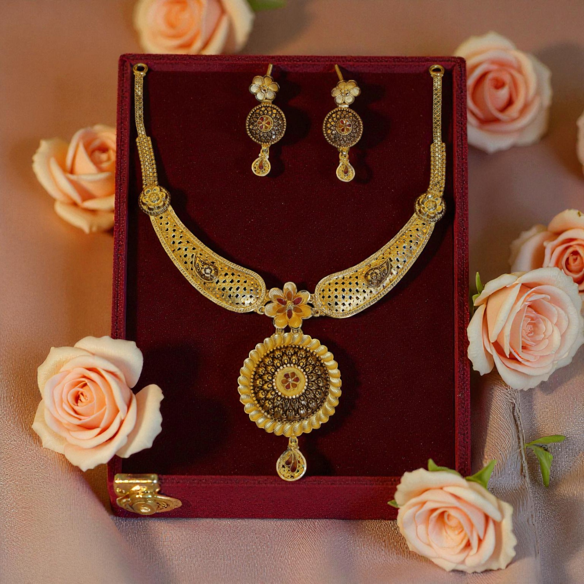 From Antique, Nakaas, Chains, Necklaces, Bangles, Studs, Jhumkas, Rings, Bracelets, Maattal, to Mumbai and Kolkata style designs, we bring you stunning collections in both lightweight and heavyweight options.